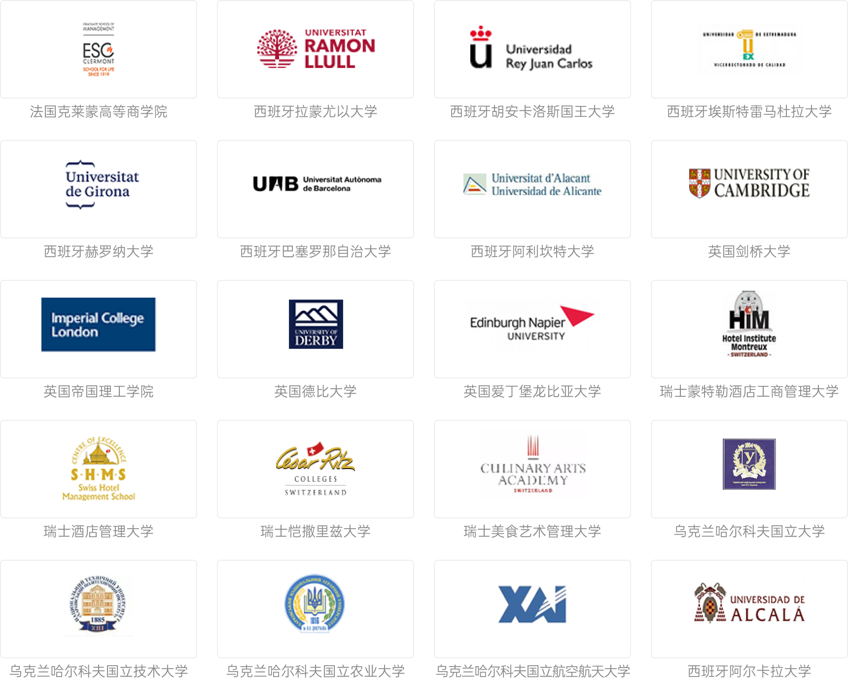 歐洲部分合作院校